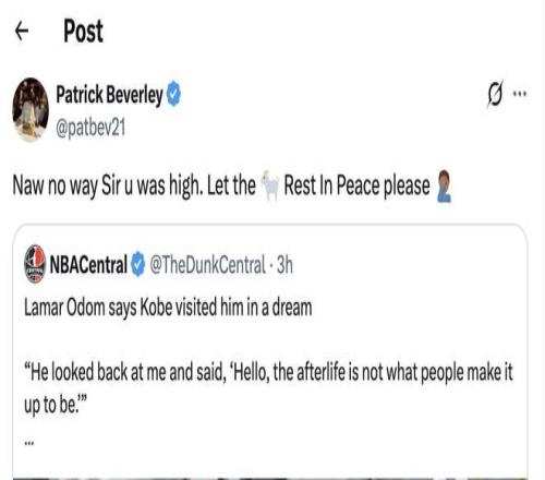 奥多姆称科比给自己托梦,贝弗利:老哥又磕嗨了让GOAT安息吧