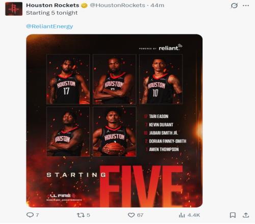 这场比赛申京因伤缺席,乌度卡并没有让卡佩拉先发而是让愤怒-史密斯先发打了一个死亡5锋阵容,此前火箭与鹈鹕的交手是1胜1负,开场两队也的确打得有来有往,墨菲首节7分3助攻2篮板,穆雷10分2篮板1助攻,火箭这边杜兰特7分,阿门9分4篮板,两队都找到了重点人。