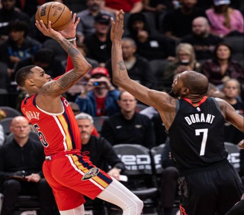 火箭107105险胜鹈鹕,杜兰特32分准绝杀,穆雷35+7